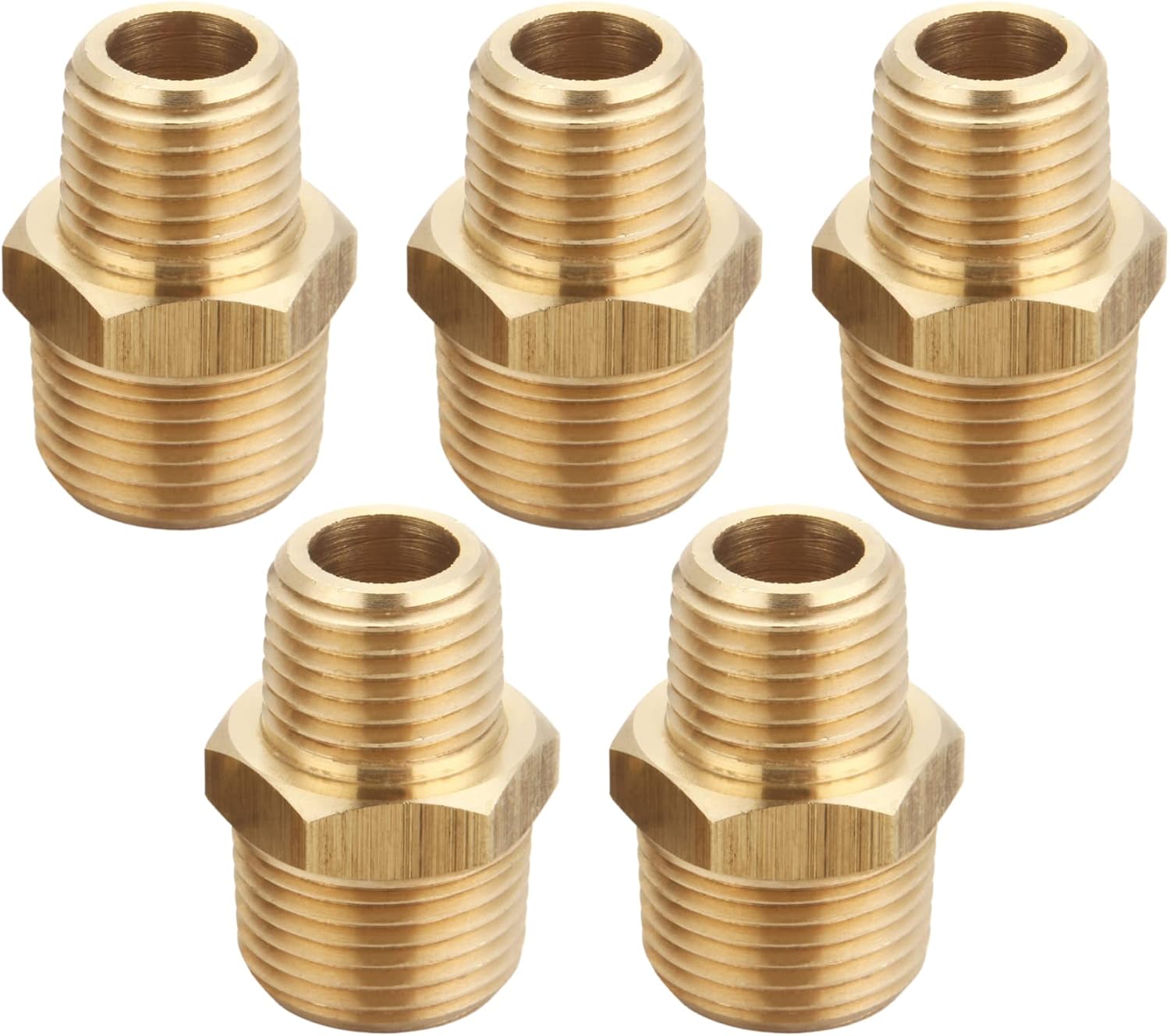 T TANYA HARDWARE 3/8 Inch Male to 1/4 Inch Male NPT Hex Nipples Reducer Adapter, NPT Brass Pipe Fittings Adapter, Brass Reducer Pipe Extension Connector, 0.625" OD × 0.5" OD, 5 Piece
