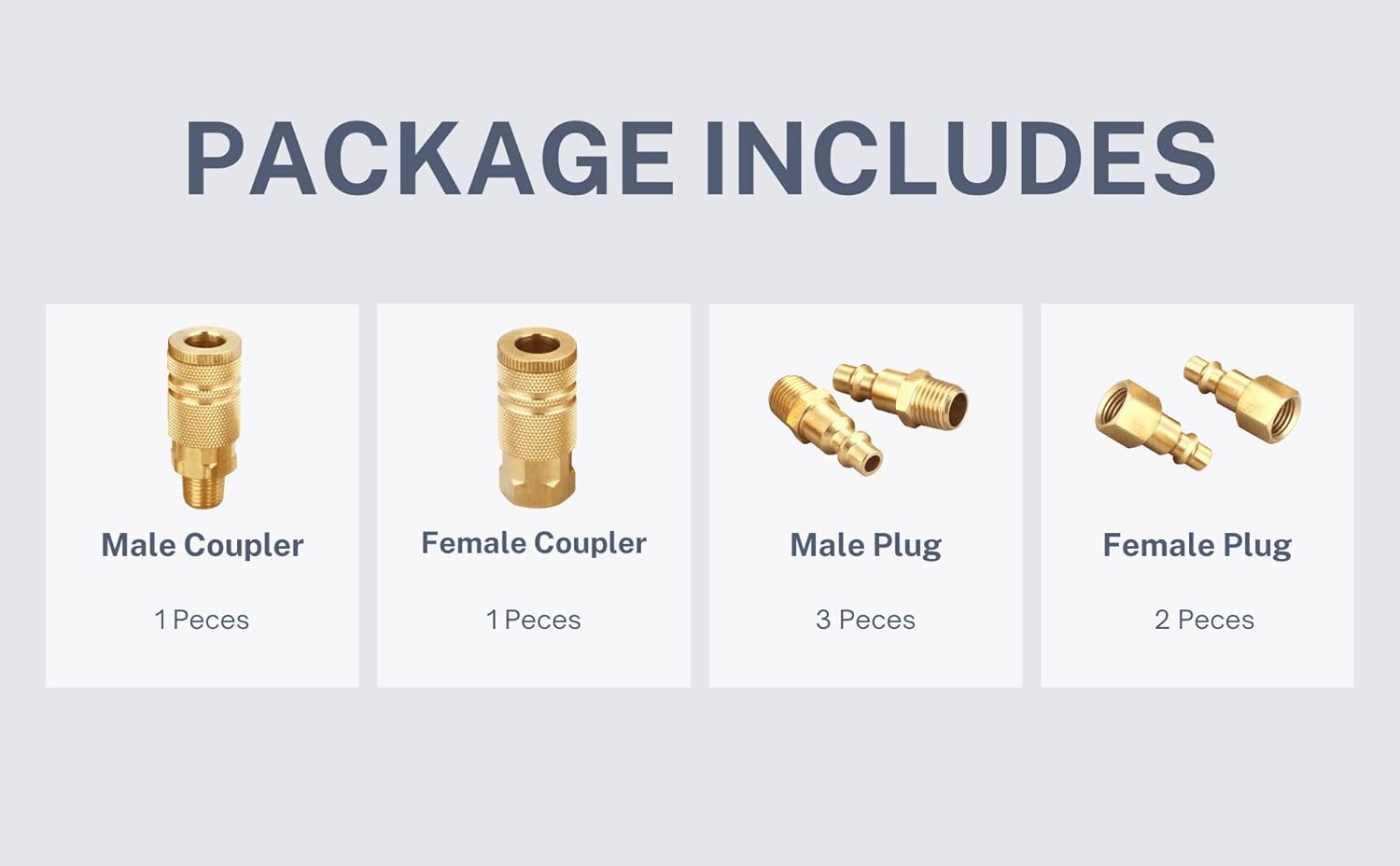 Application: Use on professional jobsites, in automotive shops or at home in the garage, and common use to air fitting kit for air tools, air compressor, air nailer, air blow gun, pressure washer, air hose