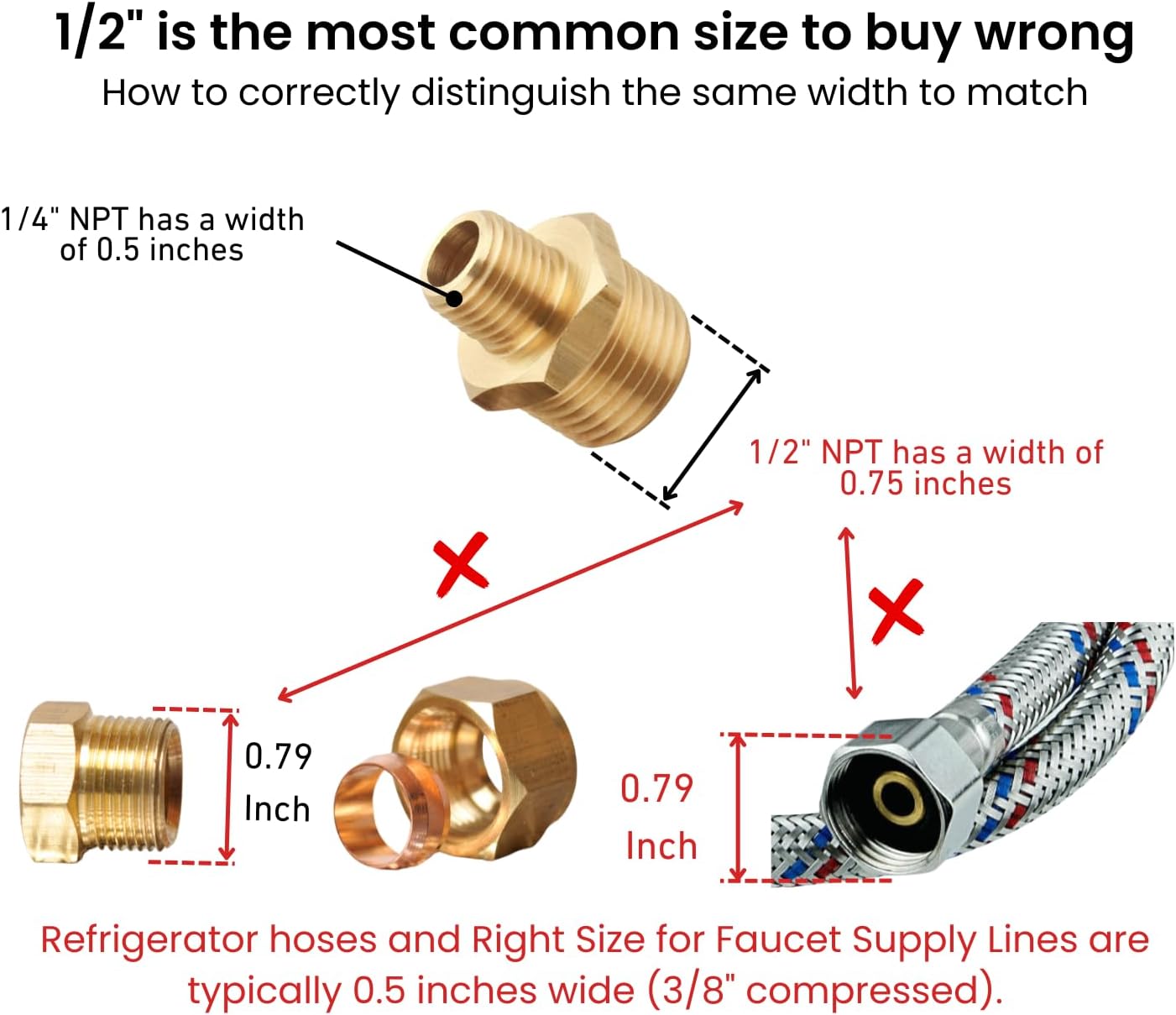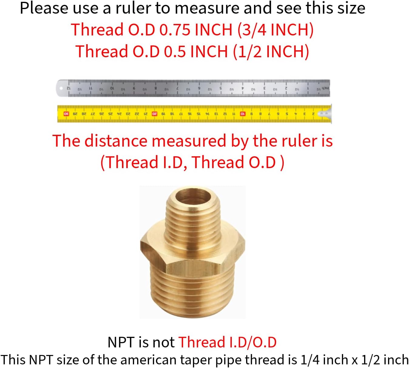 NPT THREAD SIZE & FITMENT: Fits standard 1/4 Inch NPT Male to 1/2 Inch NPT Male reducer adapter threads. NPT is a nominal pipe size, not actual diameter. Approx. 1/2" OD to 3/4" OD. Please confirm size before ordering. Not compatible with compression fittings.