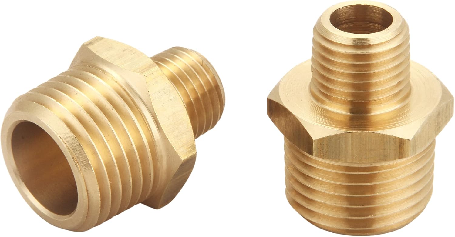 MATERIAL: Premium solid brass nipple, thicker and stronger, durable, threads are deep and accurate, high corrosion resistance, low magnetic permeability and high temperature ductility. Quantity: 2 piece brass hex nipple adapters