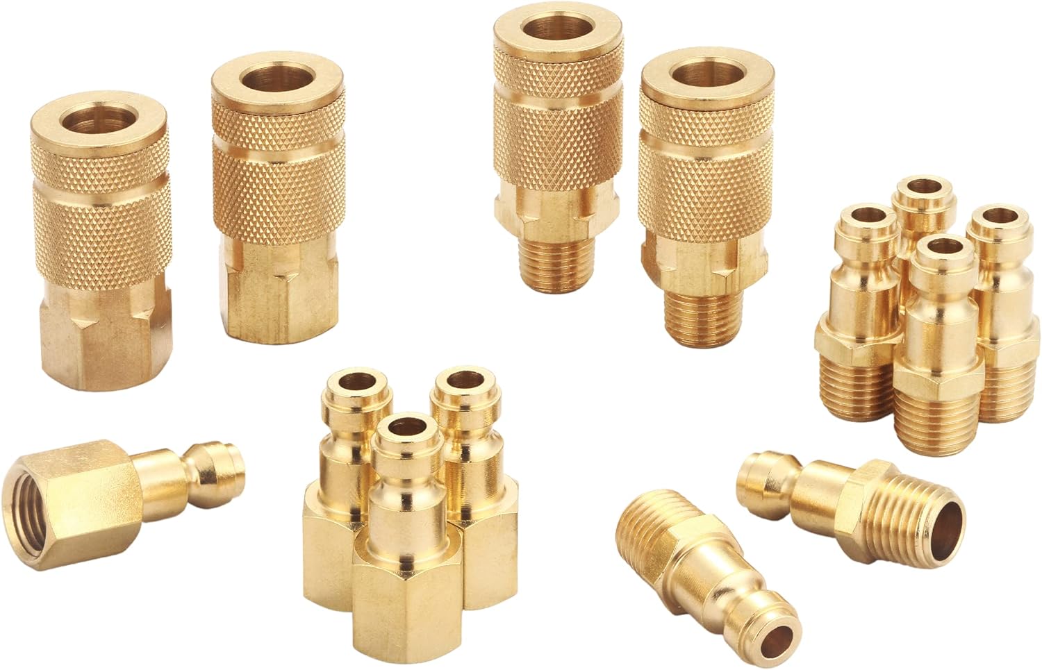 T TANYA HARDWARE Coupler and Plug Kit (14 Piece), Automotive Type C, 1/4 Inch NPT, Solid Brass Quick Connect Air Fittings Set