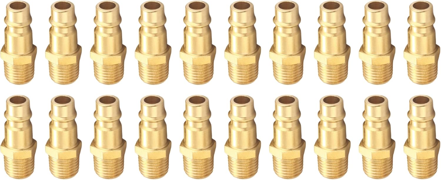 T TANYA HARDWARE Pro High Flow Male Plug Kit, (20 Piece), V Style, 1/4 Inch NPT, Solid Brass Quick Connect Air Fittings Set