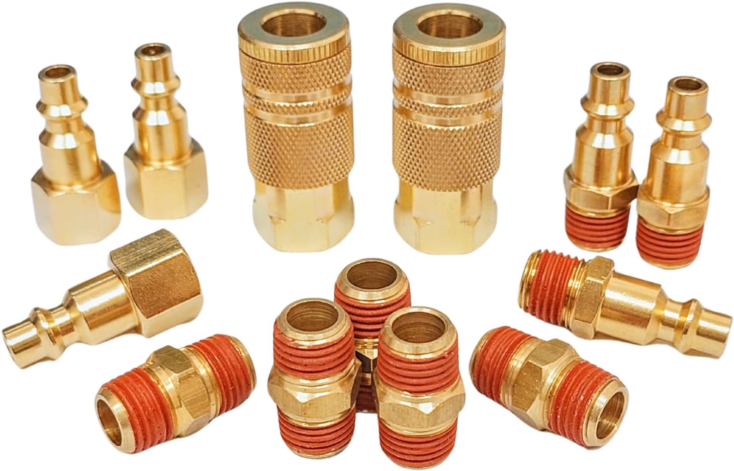 PRODUCT INCLUDING: 2 pcs 1/4 Inch NPT female couplers, 3 pcs 1/4 Inch NPT female plugs, and 3 pcs 1/4 Inch NPT male plugs with sealant, 5 pcs 1/4 Inch NPT hex nipple coupling with sealant